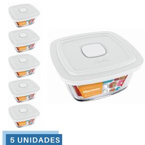 5 Potes De Vidro Marinex Facilita Quadrado Com Tampa 2 Litros
