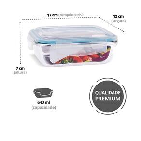 Pote Vidro Retangular 640ml Hermético Travas Quality House Mantenha sua cozinha organizada e seus alimentos sempre frescos com o Pote Vidro Retangular 640ml da Quality House. Feito em vidro borosilicato extra resistente, este pote é ideal para quem busca praticidade, segurança e durabilidade no armazenamento de alimentos. Com uma tampa hermética equipada com 4 travas e anel de vedação em silicone, este pote assegura a conservação dos alimentos, evitando vazamentos e mantendo o frescor por mais tempo. Diferenciais do Produto: - Vidro Borosilicato Extra Resistente: Material que suporta mudanças bruscas de temperatura e choques, garantindo a durabilidade e longevidade do produto. - Tampa Hermética com Travas: Com um sistema de vedação em silicone, o pote evita vazamentos e preserva o sabor e frescor dos alimentos. - Versatilidade e Segurança: Pode ser em lava-louças e micro-ondas, proporcionando praticidade no aquecimento e na limpeza. - Design Compacto e Moderno: Empilhável e elegante, ideal para otimizar espaço na sua cozinha. Ficha Técnica: - Produto: Pote Vidro Retangular 640ml Tampa Hermética Travas Quality House - Material: Vidro Borosilicato, Silicone, Plástico - Capacidade: 640ml - Formato: Retangular - Dimensões: 7cm x 13cm x 18cm - Cor: Transparente com tampa em plástico resistente - Segurança: Sistema hermético com 4 travas e anel de silicone removível 1. Posso usar o pote no forno Não, este pote é adequado para micro-ondas, freezer e lava-louças, mas não é indicado para uso em forno convencional. 2. A tampa realmente evita vazamentos Sim, a tampa possui um anel de vedação em silicone e 4 travas que garantem uma vedação perfeita, evitando qualquer tipo de vazamento. 3. O vidro borosilicato é seguro para armazenar alimentos Sim, o vidro borosilicato é um material seguro, livre de BPA e ideal para armazenar alimentos, mantendo-os livres de substâncias tóxicas. 4. O pote pode ser colocado diretamente no micro-ondas após ser retirado do freezer Sim, o vidro borosilicato é resistente a choques térmicos, mas recomenda-se seguir as instruções de uso para garantir a segurança e durabilidade do produto. 5. Como devo limpar o pote O pote pode ser lavado à mão ou na lava-louças. A tampa deve ser lavada com cuidado, evitando o uso de materiais abrasivos. 6. O produto tem Sim, nossos produtos possuem . O período de varia de acordo com o fabricante e o tipo de produto. Consulte a descrição do produto para mais informações. 7. O produto é novo ou 8. Posso rastrear meu pedido Sim, após a confirmação da compra,a própria plataforma fornecerá todos os dados de rastreamento para acompanhar a entrega do seu pedido. 9. Posso retirar o produto em algum lugar Atualmente, não oferecemos a opção de retirada em local físico. Todos os nossos produtos são entregues diretamente na sua casa. Garanta o seu Pote Vidro Retangular 640ml da Quality House e transforme a organização e o armazenamento na sua cozinha com qualidade e elegância.