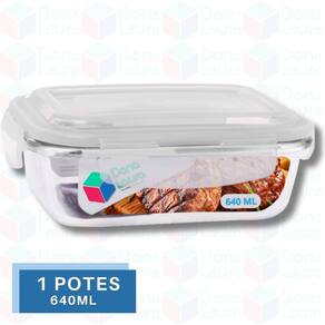 Pote Vidro Retangular Tampa Com Travas 640ml Transparente 1 un