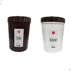 Esse kit é composto por 2 potes, um para café e outro para açúcar, ambos com capacidade de 2,5 litros. Assim, você terá espaço suficiente para armazenar esses dois ingredientes essenciais no preparo das suas bebidas preferidas.