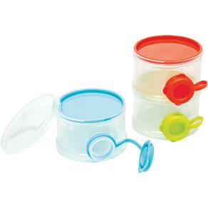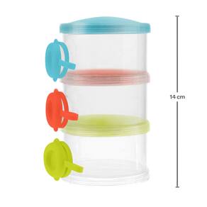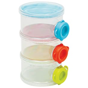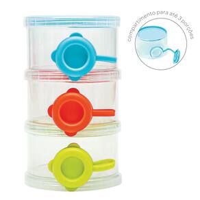 Os potes empilháveis da Buba além de coloridos e divertidos ajudam as mamães a carregarem 3 porções de leite em pó para seu bebê.