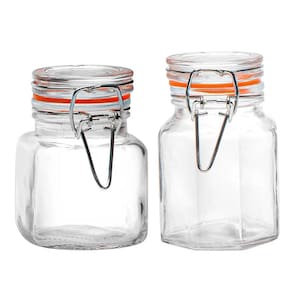 O jogo de potes para mantimentos herméticos da Casambiente é composto por 6 potes com tampa hermética, feitos de vidro resistente e com vedação em silicone laranja.