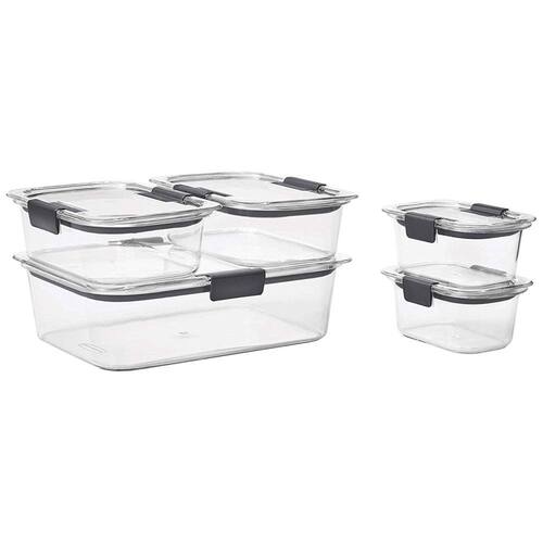 Os recipientes de zenamento de alimentos Rubbermaid Brilliance 100 à prova de vazamentos apresentam tampas e bases Tritan sem BPA com clareza de 360 graus vedação hermética e travas seguras evitam derramamentos e vazamentos e ajudam a manter os alimentos frescos e s Perfeito para uma variedade de ocasiões e eventos, como almoços, lanches, preparação de refeições, festas, feriados e muito mais Os recipientes transparentes são transparentes como o vidro para que você sempre possa ver o que está dentro, mas são leves e fáceis de transportar o material resistente a manchas mantém o recipiente de plástico com aparência de e resiste a odores Ventiladores embutidos sob as travas permitem micro ondas resistente a respingos com a tampa Os recipientes empilham se perfeitamente uns aos outros para economizar espaço e ficar organizados na despensa ou geladeira É para a máquina de lavar louça, microondas e freezer Conjunto de 10 recipientes de plástico para zenamento de alimentos inclui dois recipientes de 300 ml, dois de 800 ml e um de 2,3 mL, mais tampas, para um total de 10 peças Marca: Não Informado