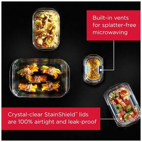 À PROVA DE VAZAMENTO E HERMÉTICO os recipientes de zenamento de alimentos Rubbermaid Brilliance Glass têm tampas cristalinas que são 100 herméticas e à prova de vazamentos, além de resistentes a odores e manchas ZENAMENTO E REAQUECIMENTO FÁCIL Os recipientes de vidro têm tampas ventiladas e seguras para micro ondas para micro ondas fácil e resistente a respingos ECONOMIA DE ESPAÇO Os contêineres modulares da Rubbermaid que economizam espaço são perfeitos para empilhamento e organização FORNO As bases de vidro são seguras para o forno a até 450 graus F, então elas funcionam como utensílios de vidro para panelas FÁCIL DE USAR Livre de BPA, para máquina de lavar louça use o rack superior para tampas, para micro ondas para reaquecimento apenas com as tampas destravadas e para freezer Marca: Não Informado