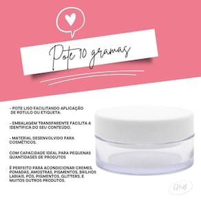 A transparência da embalagem permite uma fácil identificação do conteúdo, tornando o uso diário muito mais fácil e prático. Além disso, estes potes são fabricados com um material especialmente desenvolvido para cosméticos, garantindo a qualidade e segurança dos produtos armazenados.