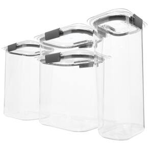 Os recipientes modulares de zenamento de alimentos Rubbermaid podem conter massas, ingredientes de panificação ou outros alimentos básicos economizar espaço e manter a despensa organizada Ótimo para alimentos para animais de estimação fácil de limpar e retirar alimentos, e tampas apertadas protegem contra a umidade As tampas se encaixam bem para ajudar a manter os alimentos frescos Pilha de contêineres para zenamento compacto Paredes de contêiner espessas e duráveis para uso diário para freezer, lava louças de rack superior e livre de BPA Conjunto de 4 recipientes herméticos para zenamento de alimentos na despensa, incluindo um recipiente de 16 xícaras, um recipiente de 2,8 mL, um recipiente de 1,5 mL e um recipiente de 768 mL mais tampas, para um total de 8 peças Marca: Não Informado