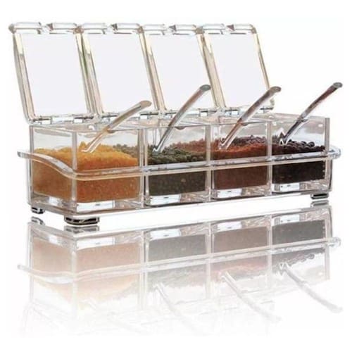 Potes porta temperos e condimentos acrílico organizadores Descrição- porta temperos e condimentos acrílico 4 potes organizadores masterchef cozinha gourmet- ideal para você que quer manter sua cozinha limpa e organizada, sem deixar os temperos e condimentos espalhados.- com tamanho ideal para suas necessidades. Tamanho dos recipientes:- comprimento: 8 cm- largura: 6 cm- altura: 7 cm Itens inclusos:- 01 x porta temperos 4 em 1- 04 x potes organizadores- 04 x colheres para temperosMaterial: Acrílico