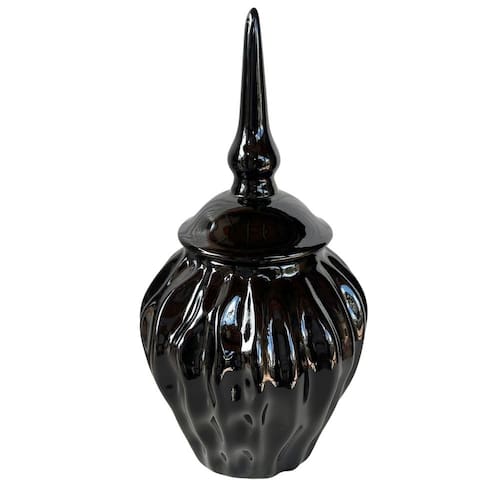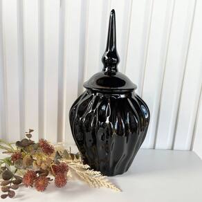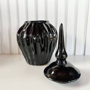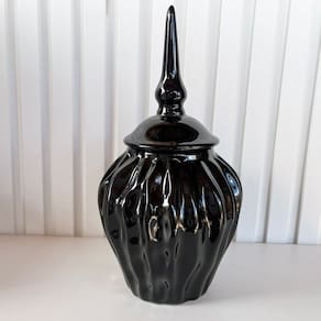 Decoração sala estante rack ornamento potiche de cerâmica onda ondulação preto com tampa.
