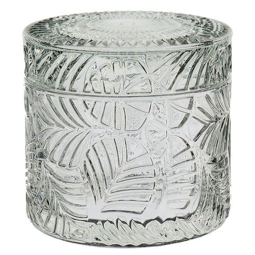 POTICHE Altura: 8,5 cm Largura: 9 cm Profundidade: 9 cm Peso: 0,50 Kg Diâmetro da Base: 8,7 cm Diâmetro do Topo: 7,7 cm Material: Vidro Cor: Transparente