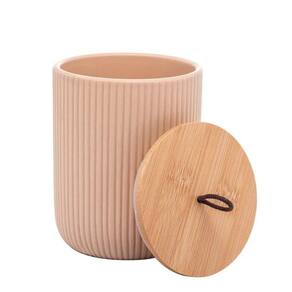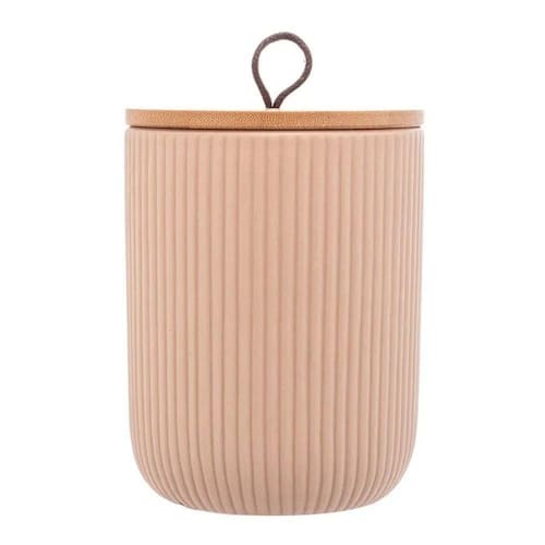 Potiche de Cerâmica com Tampa de Bambu e Pegador de Corda Lines Bege 10cm x 10cm x 12,5cm - Lyor