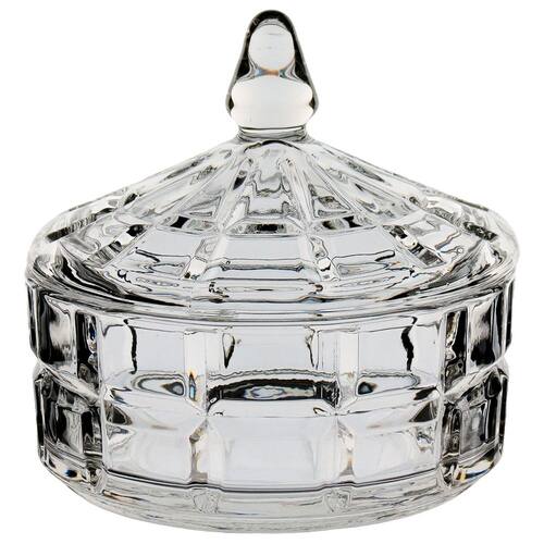 POTICHE Altura: 12 cm Largura: 12,7 cm Profundidade: 12,7 cm Peso: 0,72 Kg Diâmetro da Base: 11,4 cm Diâmetro do Topo: 11,4 cm Material: Vidro Cor: Transparente