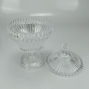 Apresentamos nosso Potiche Bomboniere, o toque final encantador para qualquer ambiente. Este potiche não apenas adiciona um toque de elegância à sua decoração, mas também é uma solução prática para armazenar e exibir doces, chocolates e outras delícias. Feito com vidro de alta qualidade e detalhes intrincados, é uma peça que atrai os olhares e encanta os sentidos. Coloque-o em sua mesa de centro, aparador ou prateleira para adicionar um toque de sofisticação e um ponto focal visualmente atraente ao seu espaço. Seja para uso pessoal ou como presente elegante, nosso Potiche Bomboniere é a escolha perfeita para elevar o charme da sua casa.