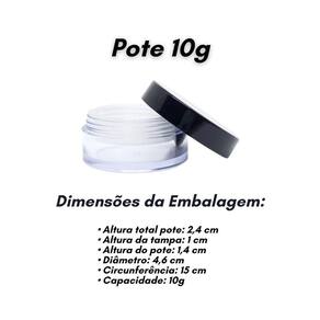 LOJA OFICIAL EMBANET. Na EMBANET você encontra as melhores embalagens fabricadas no Brasil com materiais de alta performance, durabilidade e ótimo acabamento, não tóxico e ecologicamente correto. Oferecendo um ótimo custo beneficio. - Pote liso facilitando aplicação de rotulo ou etiqueta. - Tampa com rosca vedando totalmente a embalagem. - Peneira facilitando no momento de aplicação. - Embalagem Transparente facilita a identifica do seu conteúdo. - Material Desenvolvido para Cosméticos. - Fácil Manuseio, embalagem super leve. - e embalado de forma segura, evitando danos. - Produto não testado em animais. Itens Inclusos: 25 unidades do pote 25 unidades da tampa 25 unidades de peneira Especificações do Pote: Altura total pote: 2,4 cm Altura da tampa: 1 cm Altura do pote: 1,4 cm Diâmetro: 4,6 cm Circunferência: 15 cm Capacidade: 10g Ideal para armazenar loções artesanais, sombra, pós, blush, protetor labial, corporal, esfoliante, protetor labial caseiro, hidratante, cremes, pomadas, bálsamos, amostras, testes, ervas, arte para unhas, óleos essenciais de aroma terapia, iluminador, glitter, tintas, produtos para barba, balas, geleias, condimentos, repelente insetos, lantejoulas, cosméticos, maquiagens, lembrancinhas, , entre outros. Trabalhamos com diversos tipos de embalagens. Veja mais anúncios do vendedor.