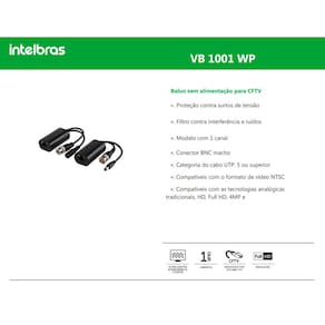 >> Power Balun 1 Canal Vb 1001 Wp Intelbras Video e Alimentação em um só cabo <<