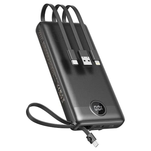 - 1 Power Bank 10000mAh, com 2 cabos e 3 saídas distintas