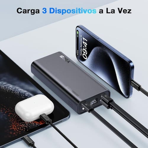Power bank com bateria portátil de 20000mAh, carregamento rápido PD 20W, design compacto, ideal para viagens e uso cotidiano.Tipo