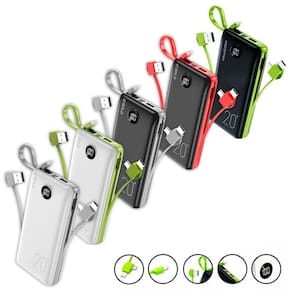 Itens do Anúncio: 1 Power Bank de 20.000mah turbo 1 Cabo Lightning acoplado 1 Cabo TIPO-C acoplado 1 Cabo Micro USB acoplado 1 Cabo USB TIPO-C para carregar o Power Bank