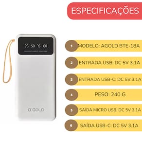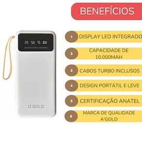 Carregador portátil com capacidade de 10000mAh, super rápido.Acabamento do material