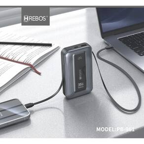 Power Bank Hrebos PB-961 Volt Expand GX, 10.000mAh, 35W de carga ultra-rápida, Display digital de precisão, Múltiplos ciclos de recarga, Portas USB-C e USB-A, Chipset de segurança integrado, Design Slim, Leve.Tipo