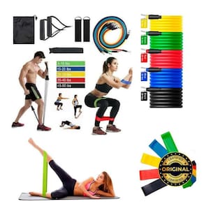 O Kit Power Resistance Band Elástico Extensor é um equipamento que foi desenvolvido para pessoas que desejam manter-se em forma de maneira prática e segura.Com este kit você faz praticamente todos os exercícios que se faz numa academia, além da economia de tempo e dinheiro. Pode ser para: musculação, pilates, yoga, fisioterapia, entre outros. Itens Inclusos: 1 Faixa AMARELO 4.5 kg de resistência 1 Faixa VERDE 7 kg de resistência 1 Faixa VERMELHO 9 kg de resistência 1 Faixa AZUL 11.5kg de resistência 1 Faixa PRETO 13.5 kg de resistência 2 Alças pegadores revestidas de espuma 2 Pulseiras de tornozelos 1 Âncora para travar na porta 1 Bolsa de transporte em nylon 1 Mini manual O que está incluso no pacote: 5 elásticos de diferentes dificuldades , 2 alças pegadoras, 2 pulseiras de tornozelo, 1 ancora, 1 bolsa, 1 manual Especificações Técnicas: - Material Elásticos: feitos de borracha profissional látex de alta qualidade e resistência - Cada elástico tem 1,20 mts de comprimento - Facilmente você pode criar mais de 30 diferentes níveis de resistência, anexando 1, 2, 3, 4 ou 5 elásticos de uma vez. - Perfeito para Musculação, Yoga e Pilates Marca: Não Informado