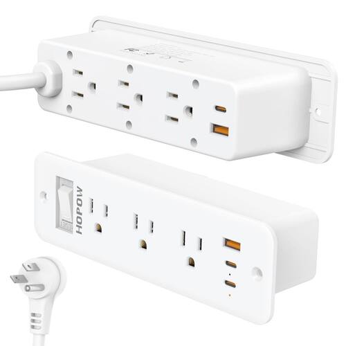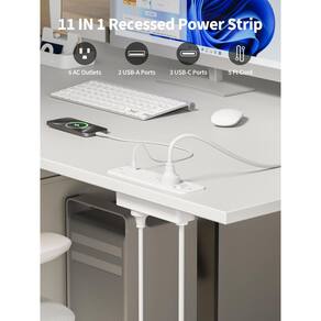 - ?Fita de alimentação embutida dupla face?- Esta tomada embutida possui um design de tomada dupla face com 6 tomadas CA (1875W/125V/15A) e 5 portas USB (3 USB-C), permitindo que mais tomadas sejam usadas no mesmo espaço para carregar vários dispositivos ao mesmo tempo. Maximizando a eficiência do espaço e reduzindo a bagunça. Adequado para montagem em mesa de cabeceira e superfície de mesa de móveis.