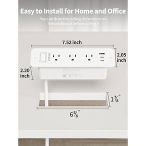 - ?Estação de carregamento oculta de móveis? - Esta tomada de móveis embutida combina perfeitamente com seus móveis para criar um visual limpo e organizado que melhora a estética do seu espaço de trabalho. Tamanho da abertura da mesa: C 19 cm x L 5 cm, espaço necessário sob a mesa: 5 cm. Você pode desenhar as dimensões de corte no papelão e cortá-lo depois de determinar o tamanho. Instale facilmente em sua mesa ou mesa lateral para maximizar seu espaço de trabalho.