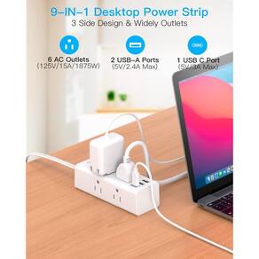- ?Cabo de extensão 9 em 1 com várias tomadas?O filtro de linha plano pode transformar 1 tomada em 6 tomadas CA, 2 USB-A e 1 USB-C, que podem carregar até 9 dispositivos ao mesmo tempo. A porta USB C pode carregar até 5V/3A. 2 portas USB-A podem carregar até 5V/2,4 A no máximo, todas as portas USB de saída são 5V/4,5A, compatíveis com seu celular, laptop, tablet, fone de ouvido ou câmeras sem uma variedade de conversores.