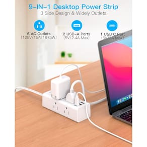 Com 6 tomadas amplamente espaçadas e 3 portas de carregamento USB, este filtro de linha com USB pode carregar e alimentar até 9 dispositivos ao mesmo tempo. Integrada com tecnologia de carregamento inteligente, a estação de carregamento de desktop pode detectar automaticamente seus dispositivos e fornecer carregamento otimizado para celular, laptop e tablet. Conecte facilmente seu PC, monitor e impressora.