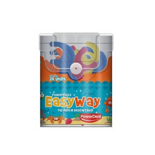 Powerdent Easy Way Fio Dental C/24 DESCRIÇÃO: Fio Dental Power Floss Easy Way permite a higienização dos dentes, de modo simples, fácil e rápido, também podendo ser feito por terceiros. Seu desenho em formato anatômico permite deslizamento suave entre os dentes agradável e eficaz higienização dos dentes sem agredir a gengiva.AÇÃO/ATIVOS: O fio dental é descartável, de uso diário. Ajuda na remoção da placa bacteriana entre os dentes, onde a escova dental não alcança. Imagem meramente ilustrativa. O produto pode ter variação de cor ou desenho, porém as características gerais são as mesmas especificadas na descrição do produto.MODO DE USAR: Passe o fio dental entre os dentes, repetindo mais de uma vez se necessário.ESTE ANÚNCIO CONTÉM: 01 UNIDADE DE POWERDENT EASY WAY FIO DENTAL C/24Powerdent Easy Way Fio Dental C/24