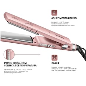 5 Níveis de Temperatura: De 150°C a 230°C, adequando-se perfeitamente ao seu tipo de cabelo e estilo desejado. Aquecimento Rápido: Está pronta para uso em segundos, oferecendo um alisamento eficiente e constante. Cabo Giratório 360°: Mobilidade sem limitações, permitindo mais conforto e liberdade durante o uso. Bivolt Automático: Use onde quiser, seja em casa, no trabalho ou nas suas viagens, sem se preocupar com voltagem.