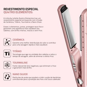 Não é sobre apenas alisar, é sobre sentir-se bem consigo mesma, com confiança e um toque de sofisticação. Com a Prancha Alisadora by Juliette Qu4tro Elementos, você não só melhora a saúde dos seus fios, mas também eleva sua autoestima e estilo.