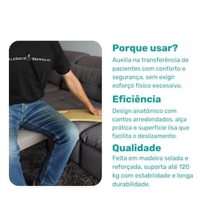 Prancha de transferência, placa de transferência paciente, prancha para cadeirante, apoio para transferir da cama, mobilidade reduzida, transferência segura cadeira de rodas, prancha madeira para fisioterapia.