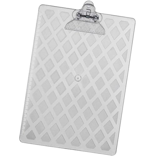 A Prancheta Super é uma prancheta transparente, corpo com detalhes de losango e prendedor transparente. Prancha e prendedor injetados em poliestireno. Prática, bonita, moderna e resistente.