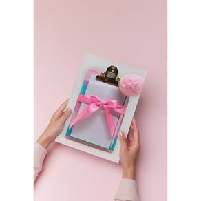 Praticidade e estilo para o seu dia a dia! Prancheta resistente em papel 250g/m² revestido, perfeita para anotações organizadas. Bloco de notas com 50 folhas, ideal para ideias e lembretes. Caneta esferográfica preta, para uma escrita fluida e sofisticada.