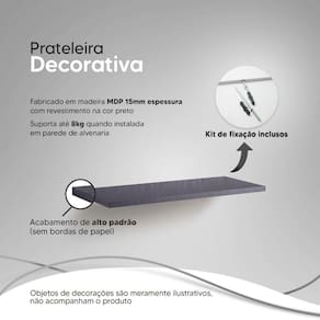 Ideal para uso residencial ou corporativo, essa prateleira oferece praticidade, resistência e um visual moderno, valorizando seu espaço sem poluir o ambiente visualmente.