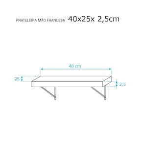 Prateleira 40 x 25cm Branco Espessura 25mm Mão Francesa. A prateleira Crie Fácil foi desenvolvida pensando em deixar o seu ambiente mais organizado e criativo de forma prática e simples.