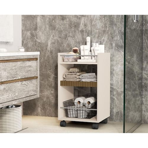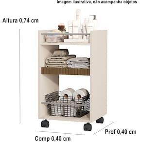 Prateleira armário banheiro multiuso organizador rodizio nova cor perola - comprar moveis para sua casa Prateleira multiuso amon, criada para inovar na organização do seu ambiente. Produto exclusivo comprar móveis em casa para deixar seu ambiente mais bonito e sofisticado procure nossas redes sociais e confira todos nossos produtos e qualidade de atendimento : Produto com video de montagem no nosso canal, acesse nossas redes sociais: comprar móveis em casa Dimensões do produto montado Altura: 0,74 cm largura: 0,40 cm profundidade: 0,40 cm Caractersticas: Mdp 12mm 4 rodizios 4 hastes plasticas Produto não acompanha cesta e objetos, foto meramente ilustrativa Montagem: Este produto acompanha kit de montagem + manual de instrução detalhando passo a passo de como montar. A montagem do produto deverá ser feita por um , para que não ocorram danos no produto. não nos responsabilizamos por erro de montagem Atenção: a montagem não é oferecida pela comprar móveis em casa, a montagem do produto é por conta do comprador. Observações importantes: A é de 90 dias por defeitos de fabricação. Se no ato de recebimento do produto o cliente verificar que o produto não está em prefeito estado, principalmente por ocasião de transporte irregular, o cliente deverá recusar o recebimento do produto e entrar em contato para resolver o problema. Podem haver variações referentes à tonalidade das cores expressas nas fotos, por conta de fatores como iluminação e brilho de cada monitor/celular. Fotos meramente ilustrativas, não acompanham os produtos de decoração. Atenção, se atente a politica de troca/devolução da empresa. Marca: Não Informado