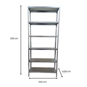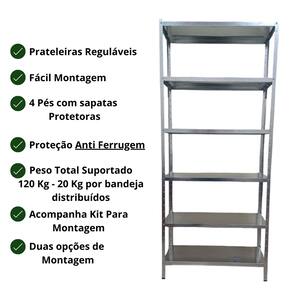 CARACTERISTICAS: *Fabricada em Chapa 0,50 mm *Peso máximo suportado 120 Kg - 20 Kg por bandeja distruibuídos *Proteção Anti Ferrugem *6 bandejas *Fácil Montagem *Acompanha Parafusos para montagem