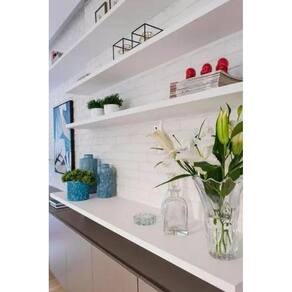 Prateleira Bancada Branca Decorativa Quarto Sala com 100x30 Prateleira branca fosca 100 MDF Decore seu ambiente com leveza e sofisticação, use sua criatividade, você ainda tem vantagens de economia de espaços. Características dos produtos :