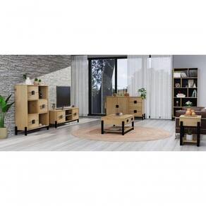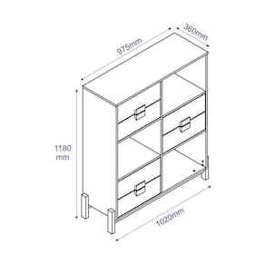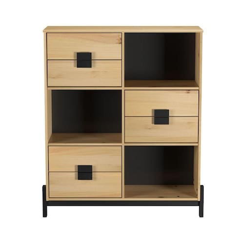 Ela apresenta três nichos abertos e seis gavetas, oferecendo uma combinação perfeita entre exposição e organização.