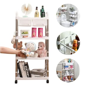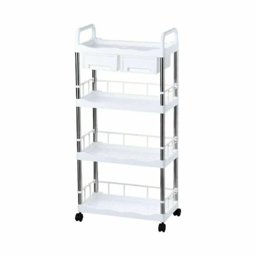 Prateleira Branca Multiuso 4 Andares com 2 Gavetas Rodinhas