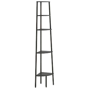 Esta prateleira de canto de 5 camadas é uma solução de armazenamento inteligente que aproveita ao máximo o espaço dos cantos, adicionando elegância e funcionalidade. Construído com madeira de engenharia resistente e uma estrutura de aço sólido, é ótimo para exibir livros, decoração e itens de uso diário, enquanto seu elegante acabamento preto anima seu espaço.