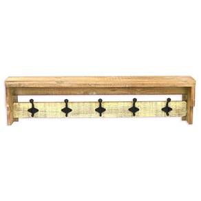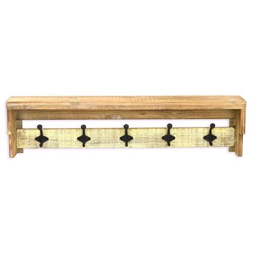- Dê um presente que facilite a vida de seu ente querido com este cabide e prateleira modernos de madeira maciça de 5 ganchos em estilo agrícola. Este item combina um cabide de madeira maciça resistente montado na parede e uma prateleira para guardar outros itens, como chaves, guarda-chuvas e muito mais.