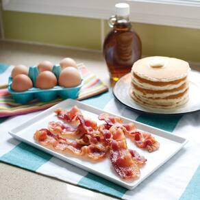 - A prateleira especialmente projetada para micro-ondas mantém o bacon elevado para que a gordura escorra, deixando você com um café da manhã mais saudável
