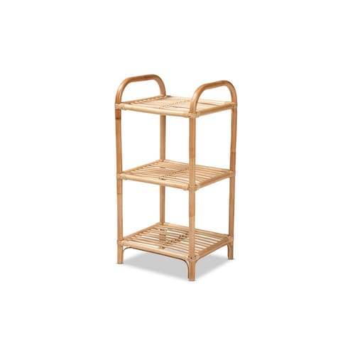 Os fios de fibra de vitan/rattan semelhantes a cabelos são comuns devido à natureza do material. Características Prateleira boêmia Construída em rattan natural Três (3) prateleiras Estrutura simplificada Alças laterais ergonômicas Material: rattan Cor: marrom natural Dimensões gerais: 31,50 polegadas de altura x 15,70 polegadas de largura x 13,80 polegadas de profundidade Dimensões da prateleira aberta: 14,40" de largura x 13,80" de profundidade Pernas altas: 3,30" de altura Montagem necessária: não fabricada na Indonésia - Crie uma cena carismática em seu interior com a estética tropical da prateleira de exibição de Barras. Feita na Indonésia, esta prateleira é feita de rattan. Três prateleiras oferecem espaço para organizar itens decorativos, enquanto a moldura minimalista permite que a luz flua naturalmente por toda a sala. As Barras chegarão totalmente montadas e apresentarão alças convenientes para facilitar a reorganização quando necessário.