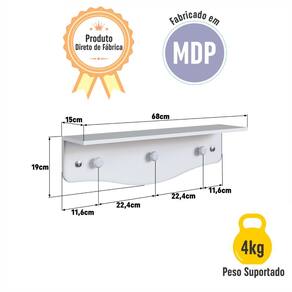 Prateleira Infantil de Madeira com Cabideiro Branco Linha Encanto - Completa Móveis