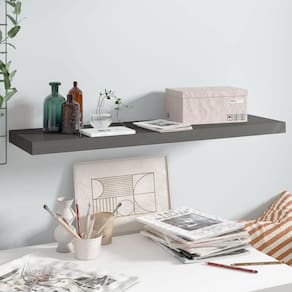 - Cor: cinza- - Forma: retangular- - Material: madeira MDF- - Acabamento: alto brilho- - Interno/externo: somente interno- - Capa incluída: Não- - Sala: quarto- - Peso máximo: 22 libras- - Montagem incluída: tudo incluído na montagem- - Dimensões: 9,3 polegadas x 35,4 polegadas x 1,5 polegadas (L x C x A) - - Altura da superfície: 1,5 pol. - Peso: 4,52 libras- - Escada: Não- - Marca: vidaXL- - A entrega contém: prateleira- - Montagem necessária: Sim- - SKU: 323796- - EAN: 8720286074275-