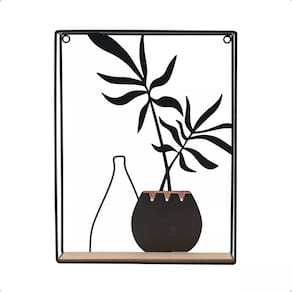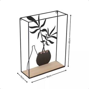 O Nicho Suspenso é feito de ferro e MDF, unindo organização e decoração em uma única peça.