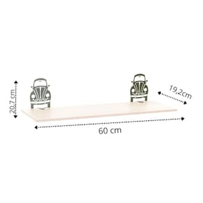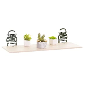 Prateleira Decorativa Fusca com estrutura em aço e pintura eletrostática e prateleira de madeira MDP multifuncional para sala de estar, sala de jantar, quarto, cozinha e qualquer ambiente, ideal para organização e decoração da casa. Organize todos os ambientes.