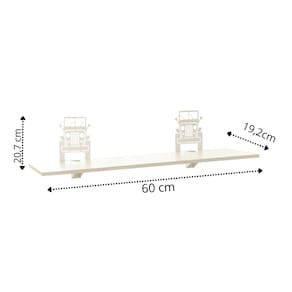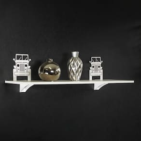 Prateleira Decorativa Jeep com estrutura em aço e pintura eletrostática e prateleira de madeira MDP multifuncional para sala de estar, sala de jantar, quarto, cozinha e qualquer ambiente, ideal para organização e decoração da casa. Organize todos os ambientes. Acabamento: Melamínico Ambiente Principal: Sala de Estar Complexidade da Montagem: Baixa: pode ser montado por uma pessoa sozinha Cor: Branco Cor do Produto: Branco Escala de Brilho: Fosco Itens Inclusos: 1 Prateleira e manual de montagem Manual de Montagem e Instalação: https://cdn2.madeiramadeira.com.br/prd/metaltru-ltda/2058297-23585%20-%20manual%20de%20montagem.pdf Material Principal: MDP Necessita Montagem: Sim Peso: 0,757 kg Peso Máximo por Prateleira: 10 kg Possui Espelho: Não Possui Quantidade de Prateleiras: 01 Recomendações de Uso, Manutenção e Limpeza: Limpar com pano umedecido Sistema de Montagem: Parafuso cabeça chata Phillips Ø4,0x 40mm / Bucha expansiva Ø6mm Suporta Até (kg): 10 kg